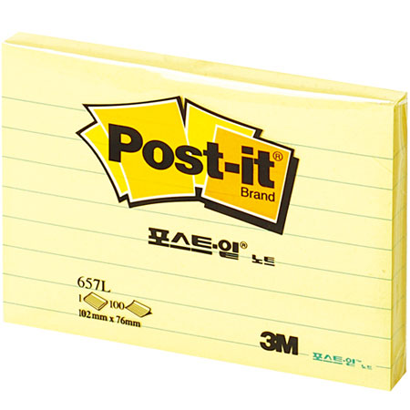 포스트잇 657-L(라인/3M)/102x76mmx100매/노랑