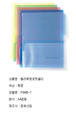 ◎ 상품 상세설명- 규격 : A4/A3 겸용- 재질 : 연질- 색상 : 투명- 화일내부 양면에 포켓이 있음◎ 상품정보고시■ 법에 의한 인증 사항 - 해당없음■ 제조국 또는 원산지 - 대한민국■ 수입여부 - 해당없음■ 안전인증여부 - N