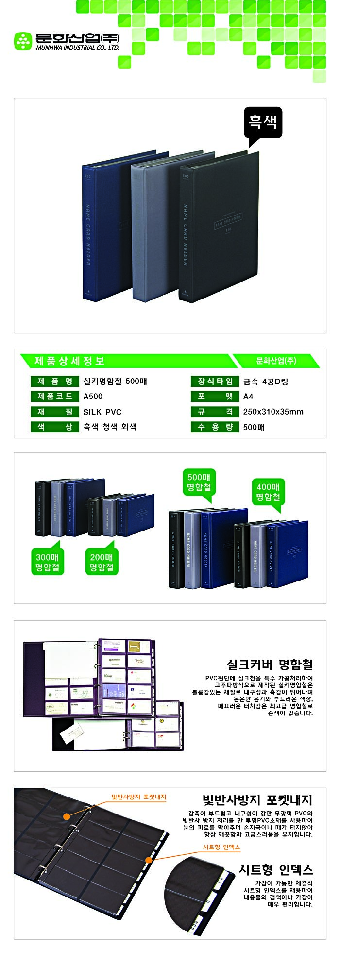 ■ 품명 및 모델명: 실키명함철(500장/A500/흑색/문화산업)