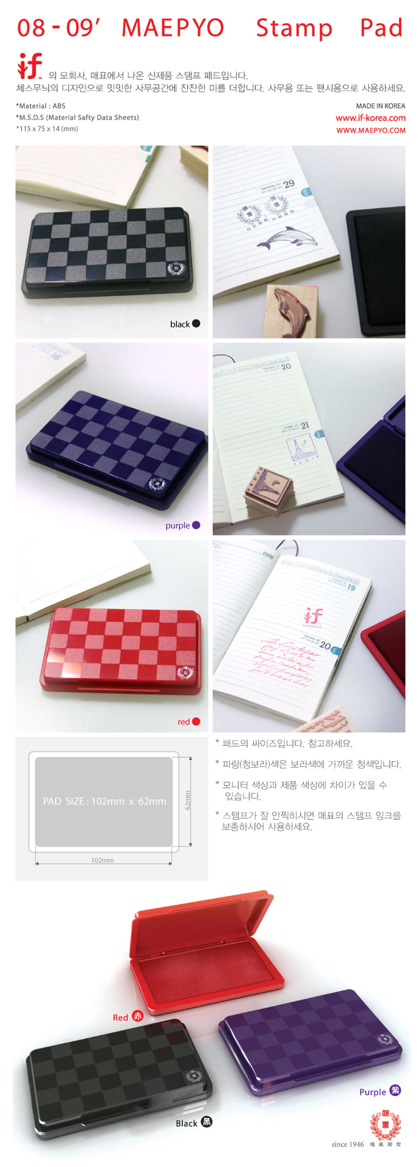 특징- 매표- 특대(103x157mm) ■ 품명 및 모델명: 스템프패드(매표/특대/흑) ■ 법에 의한 인증, 허가 등을 받았음을 확인할 수 있는 경우 그에 대한 사항: 해당없음 ■ 제조국 또는 원산지: 국산 ■ 수입여부: 해당없음 ■ 연락처: 02-2279-4222~3 ■ 안전인증여부: 해당없음:N