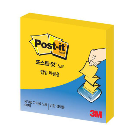 포스트잇 강한점착용 팝업리필 KR330(그리움노랑/3M)/76x76mmx90매/형광노랑