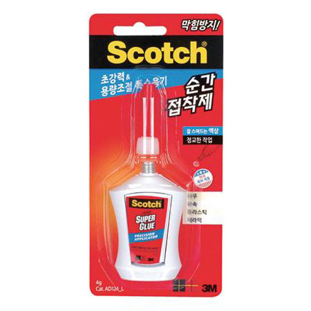 * 제조사 :3M * 원산지 :대만 미국에서 특허받은 막힘방지 용기 사용, 미세하세 제품 양 조절, 초강력 접착제 ■ 품명 및 모델명: 스카치 순간 접착제(액상/4g) ■ 법에 의한 인증, 허가 등을 받았음을 확인할 수 있는 경우 그에 대한 사항: 해당없음 ■ 제조국 또는 원산지: 대만 ■ 수입여부: 수입 ■ 안전인증여부: N