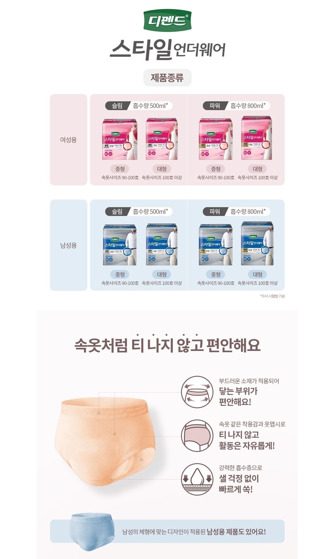 [면세]디펜드스타일 언더웨어 남성 파워대형 8매x8팩(유한킴벌리)