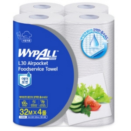 와이프올 L30 에어포켓 푸드서비스 타올(32M*4롤/41414/유한킴벌리)