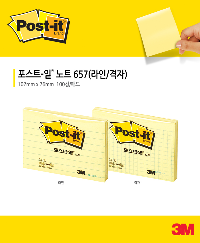 포스트잇 657-L(라인/3M)/102x76mmx100매/노랑