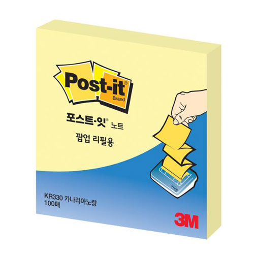 포스트잇 팝업팩 리필 KR-330(노랑/3M)/76x76mmx100매/노랑