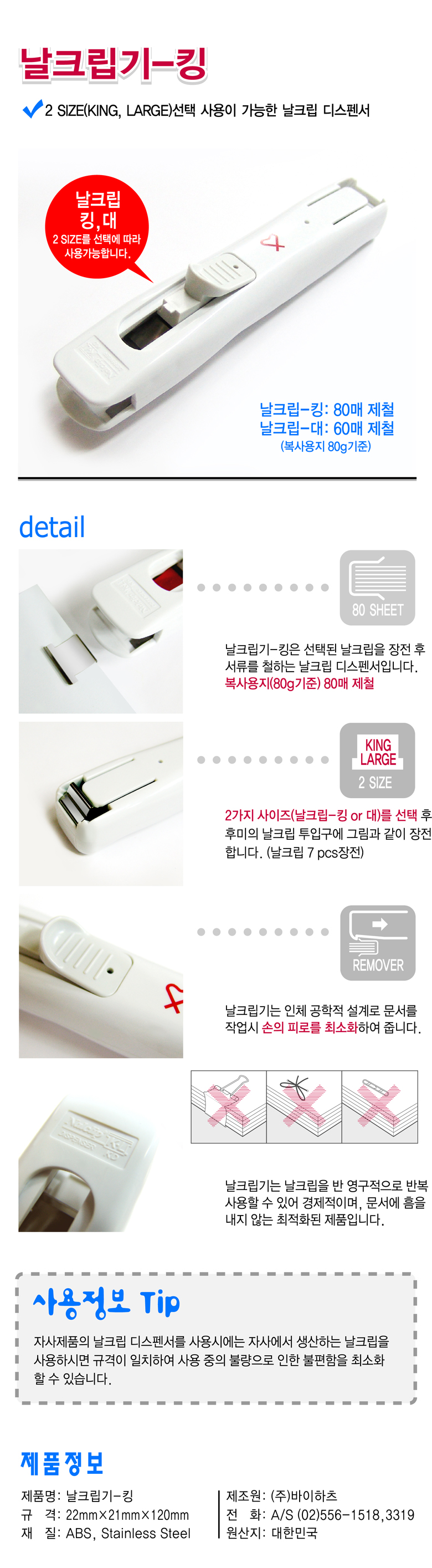 * 2가지 사이즈의 날크립(대,특대 겸용)을 하나의 디스펜서로 해결* 지철 능력 특대-80매,대-60매 겸용