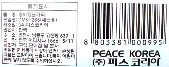 ■ 품명 및 모델명: 재단가위(DMS-285/평화)