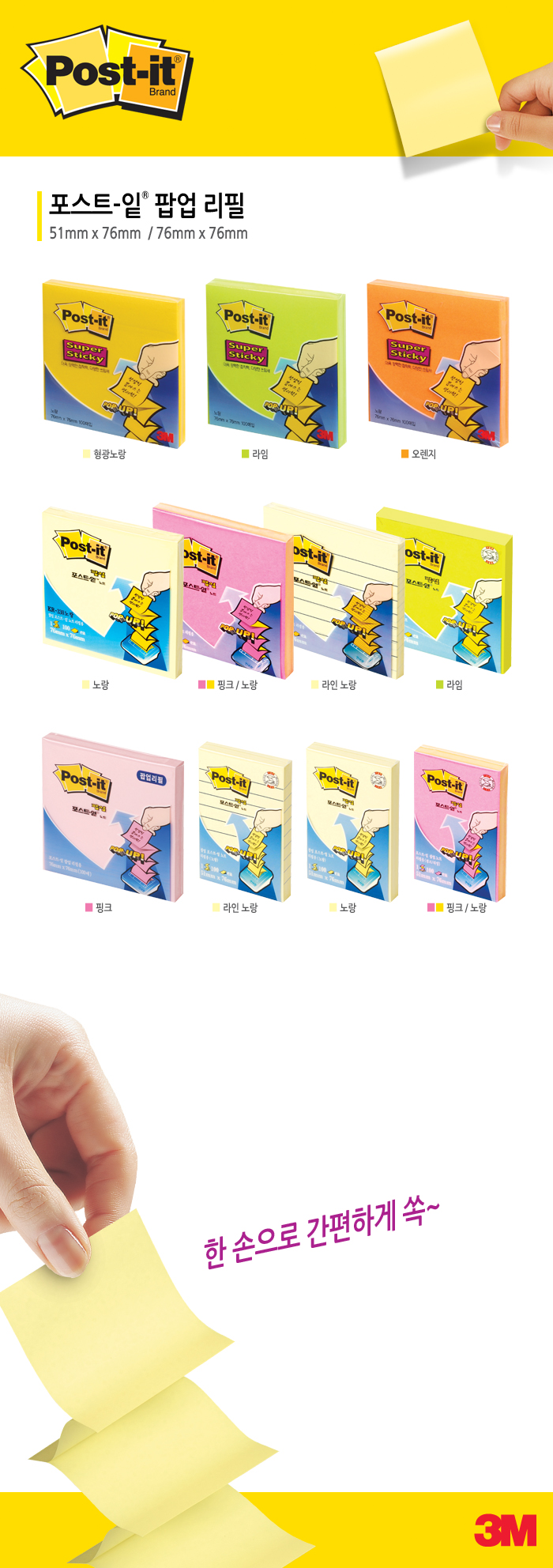 ■ 품명 및 모델명: 신)슈퍼스티키 팝업리필(KR330/형광노랑/3M)