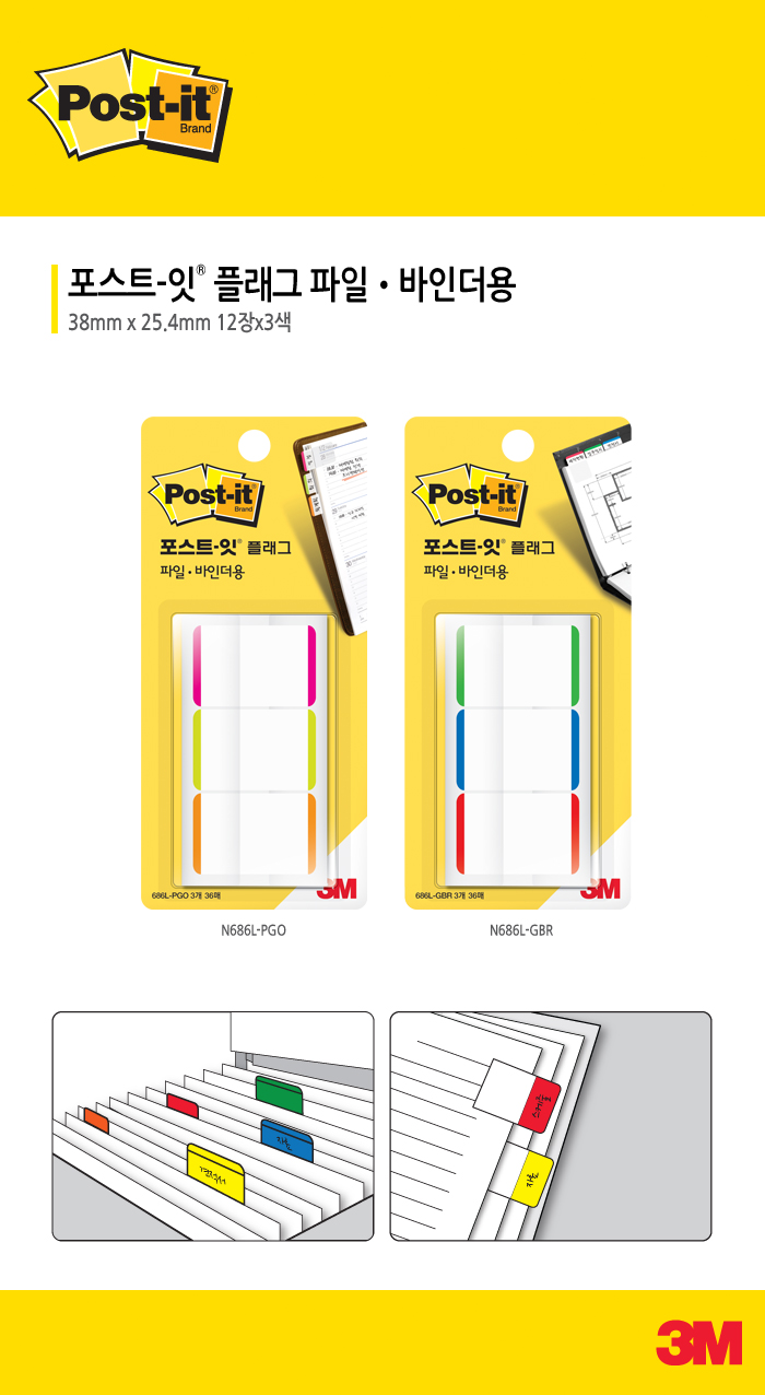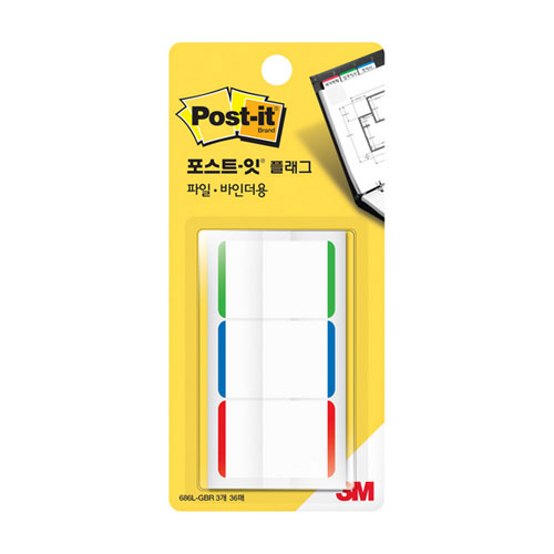 포스트잇 플래그 인덱스탭 N686L-GBR(파일,바인더용/3색/3M)/38x25.4mm/686L-GBR