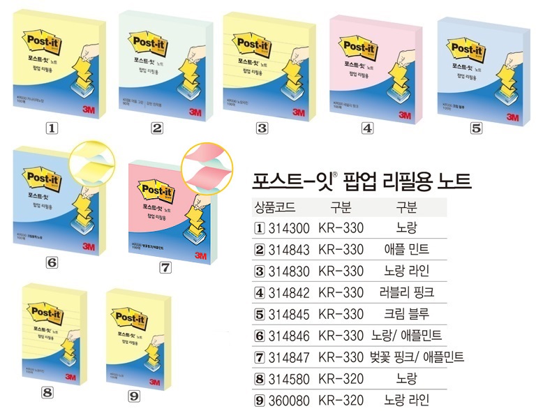 ■ 품명 및 모델명 : 포스트잇팝업리필용KR-330(벚꽃핑크/애플민트)/3M)