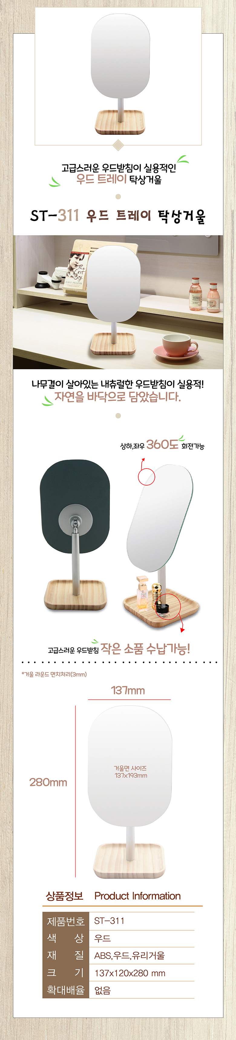 우드 트레이 탁상거울 ST-311