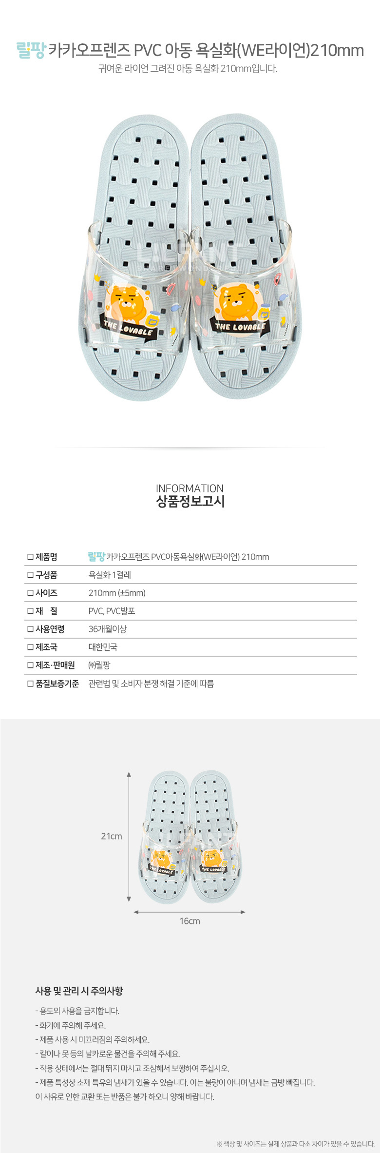 카카오프렌즈 PVC 아동욕실화(라이언/릴팡)