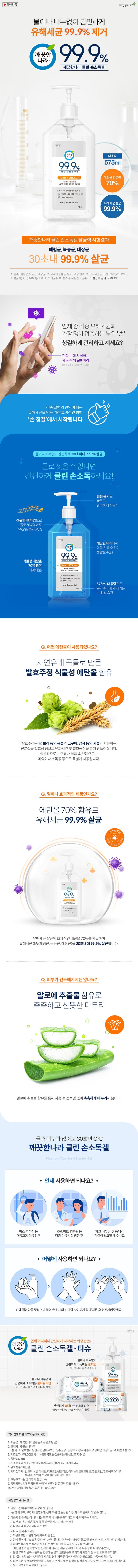 깨끗한나라 겔타입 손소독제 575ml(Ach 70%/펌프형/깨끗한나라)