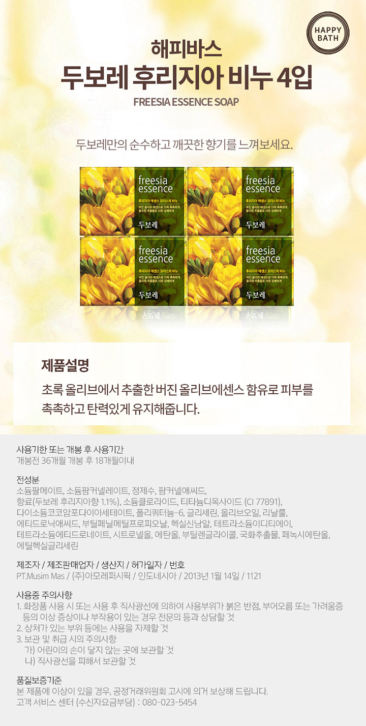 아모레 해피바스 두보레 후리지아 에센스비누4입