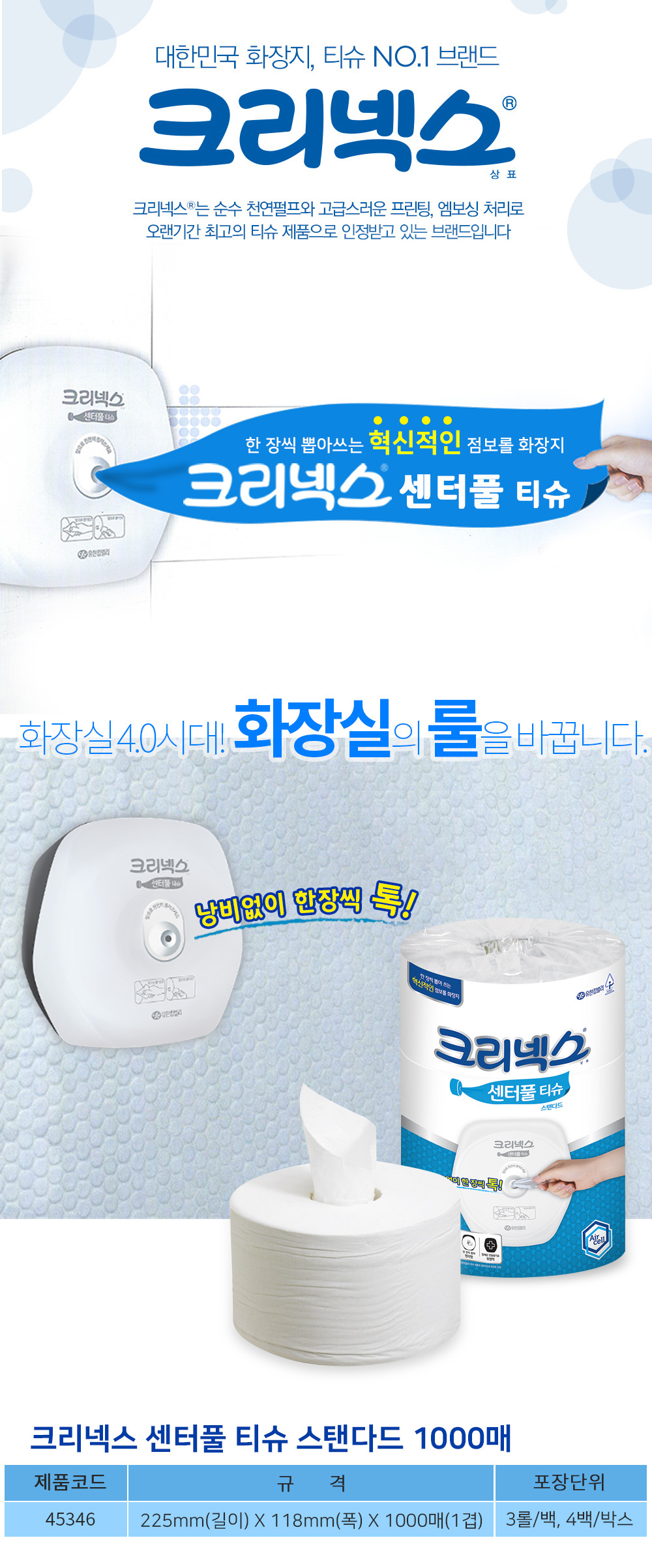 크리넥스 센터풀 티슈 스탠다드(1000매*3롤/4534661/유한킴벌리)