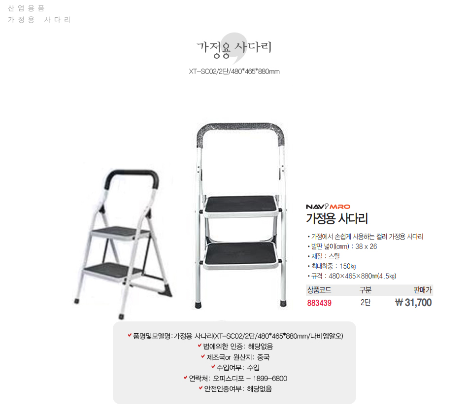 가정용 사다리(XT-SC02/2단/480*465*880mm/나비엠알오)