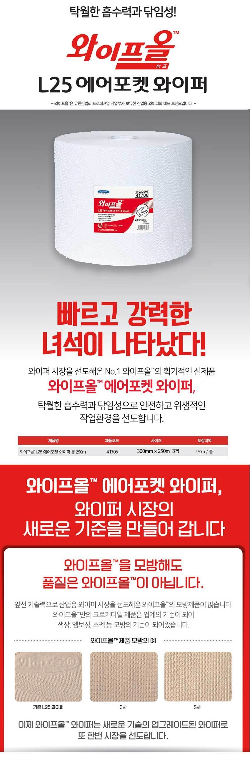 와이프올 L25 에어포켓 와이퍼(롤/3겹/250m/41706/유한킴벌리)